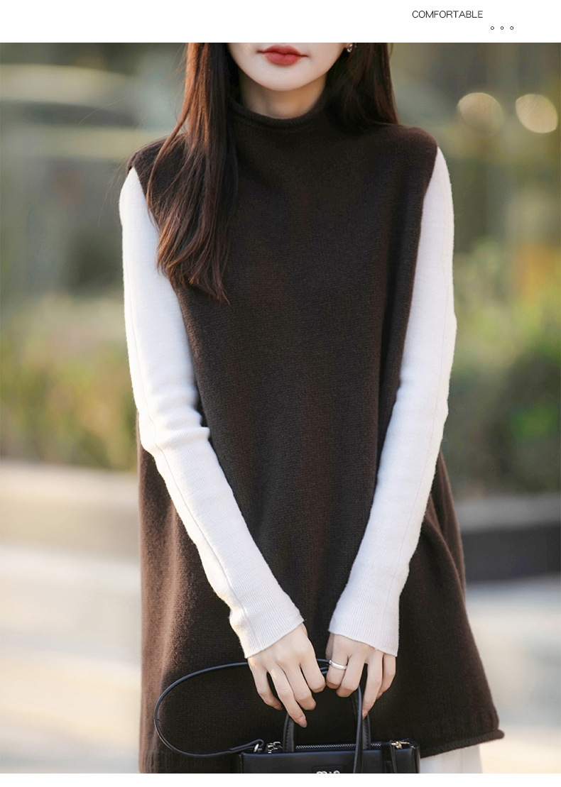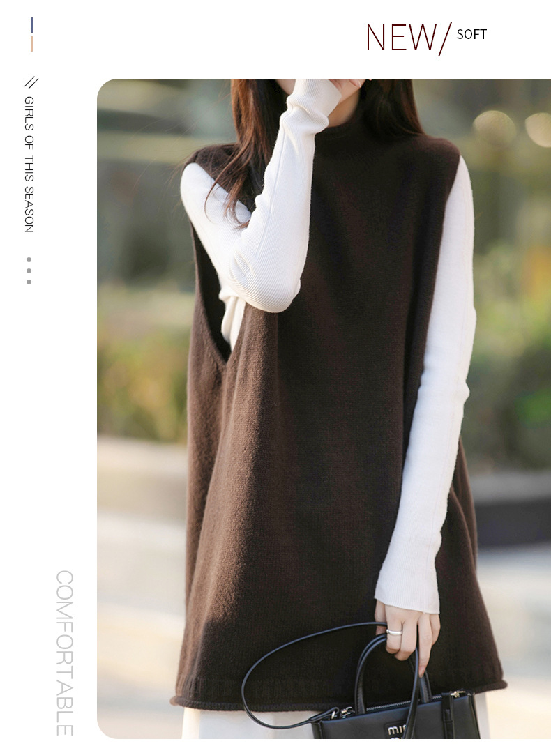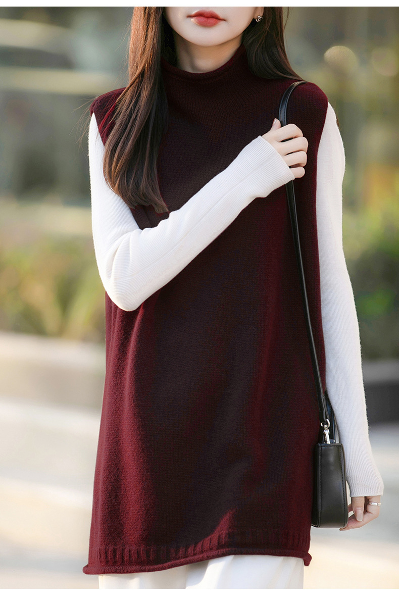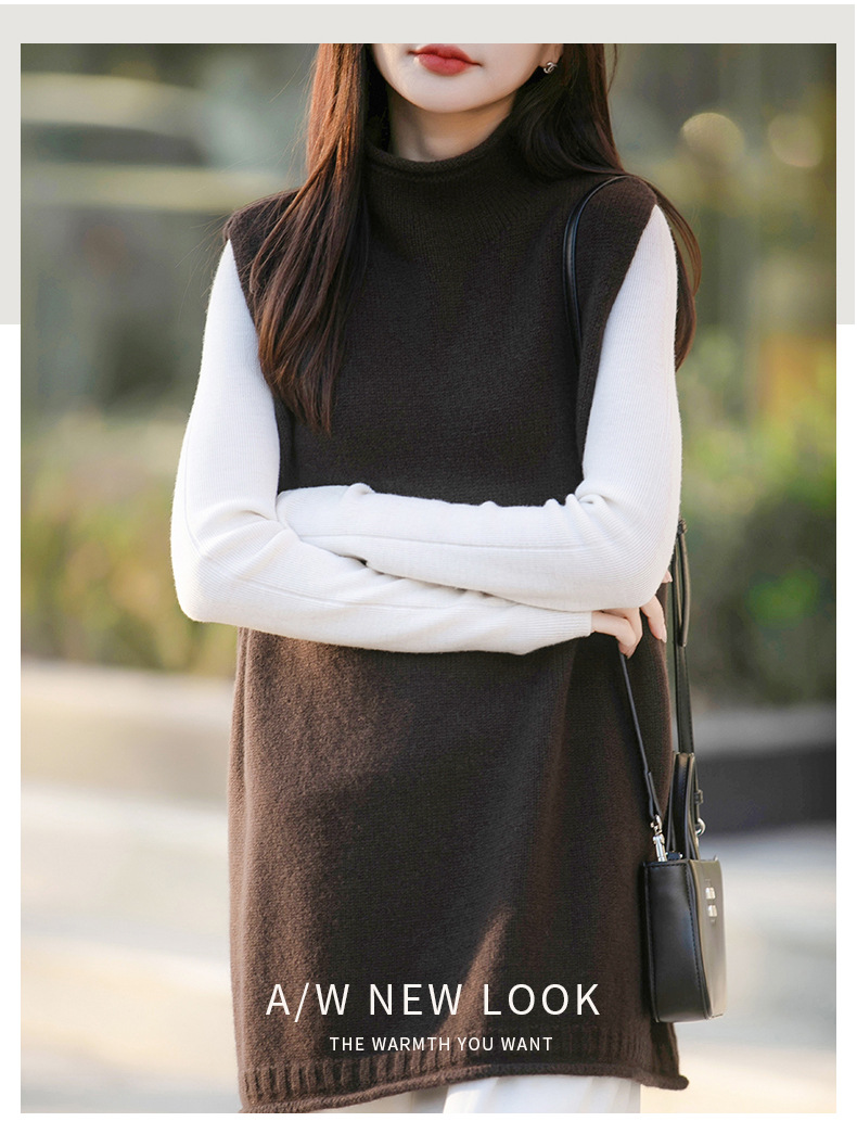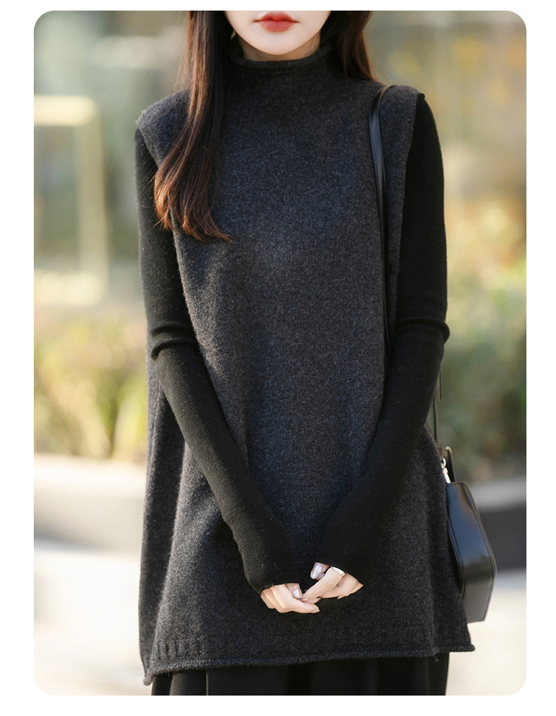 半高領中長版寬鬆疊穿背心百搭坎肩羊毛針織馬甲