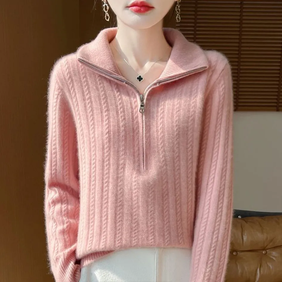 百搭顯瘦半拉鍊素色麻花針織毛衣-Cicimode
