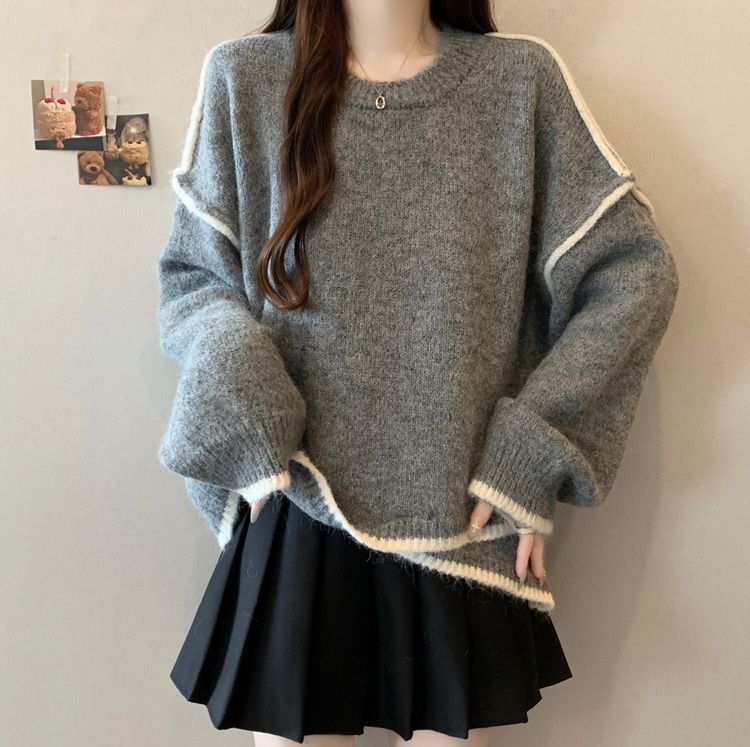 慵懶風設計感 洋氣韓版寬鬆針織毛衣
