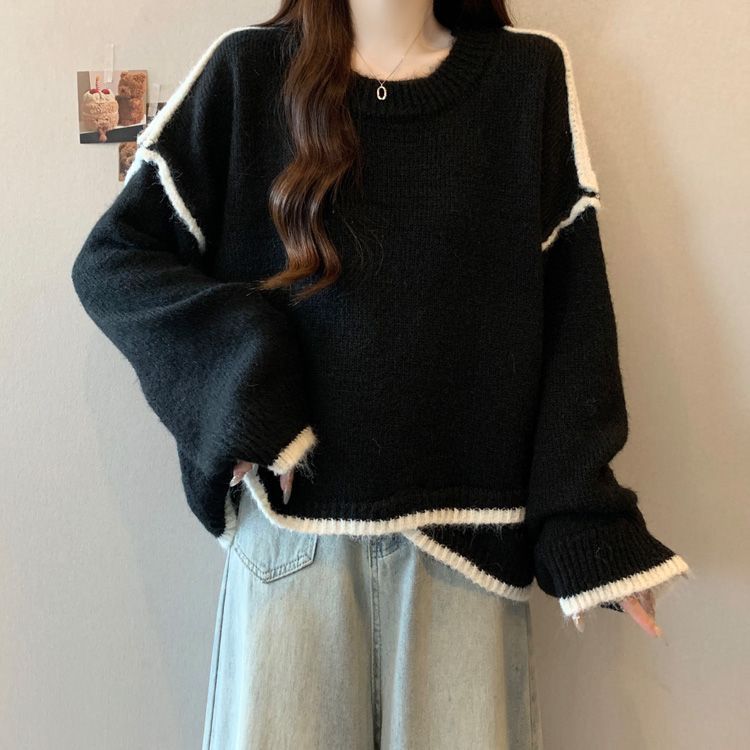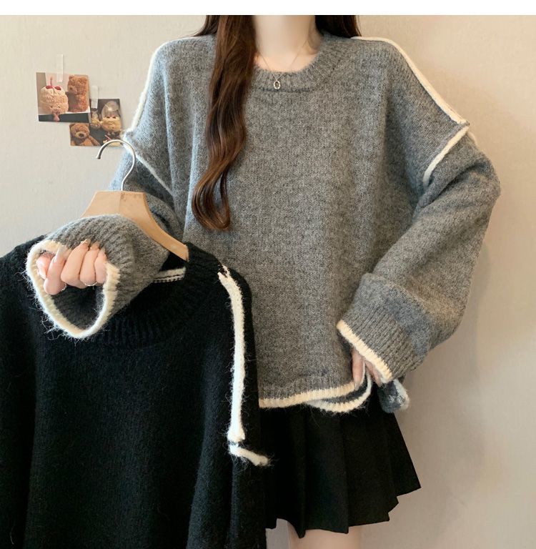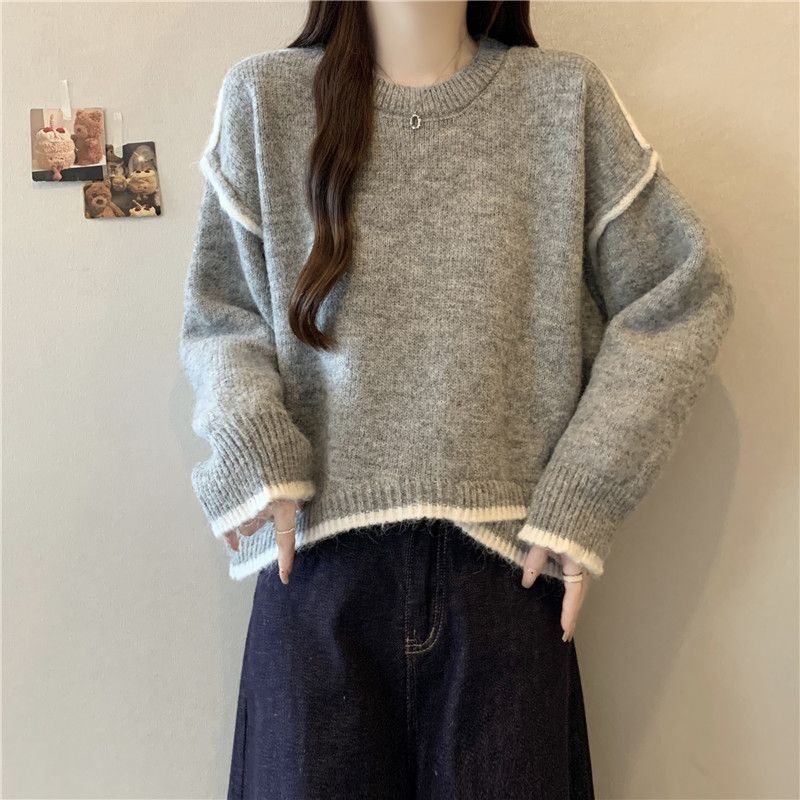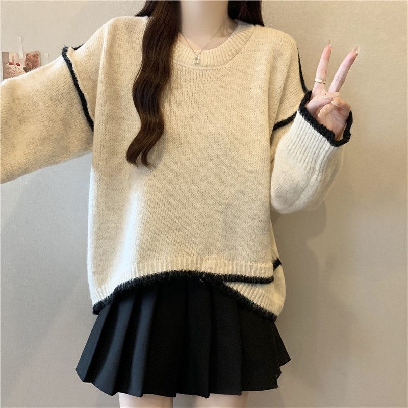 慵懶風設計感 洋氣韓版寬鬆針織毛衣-Cicimode