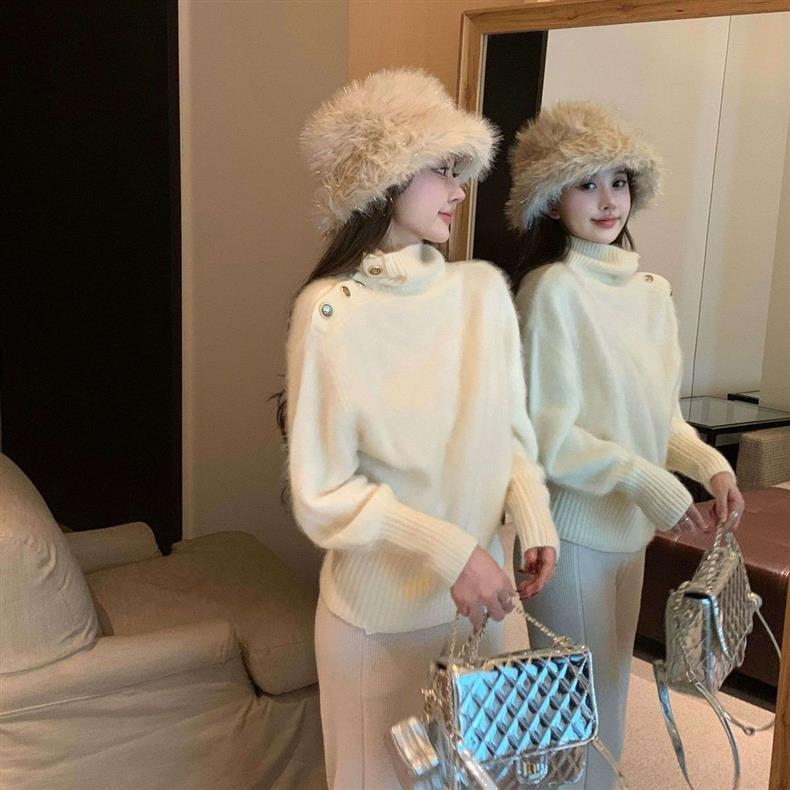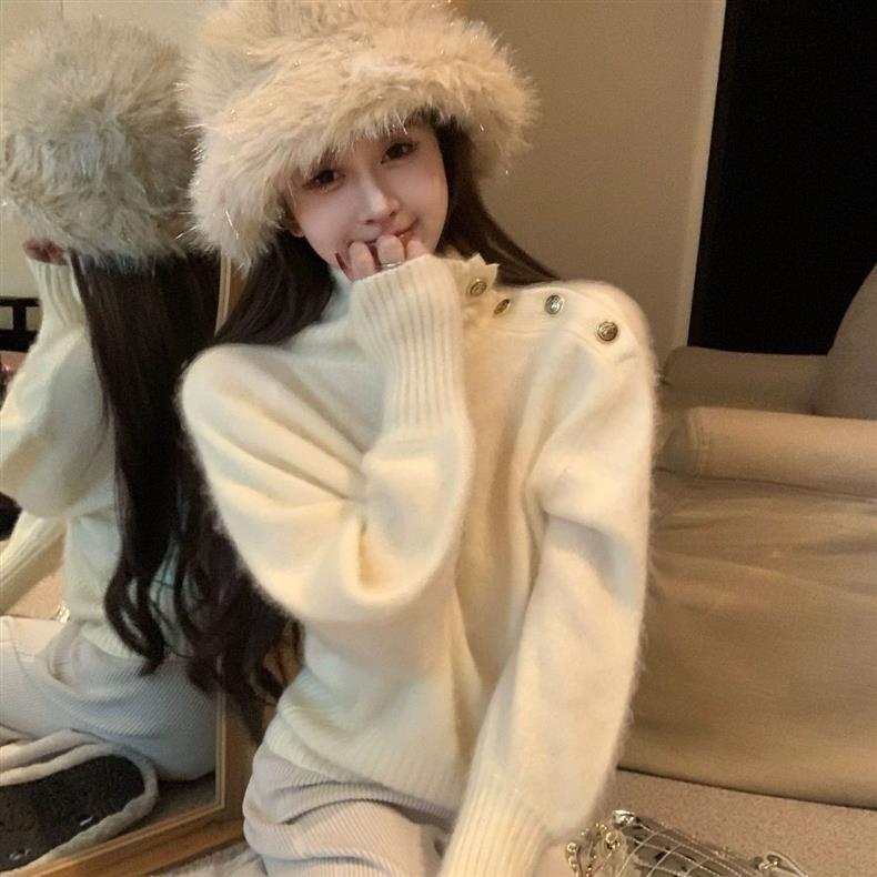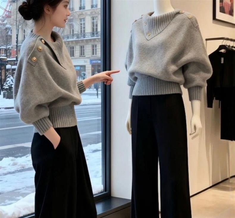 高級感韓系慵懶可外穿不規則翻領針織毛衣