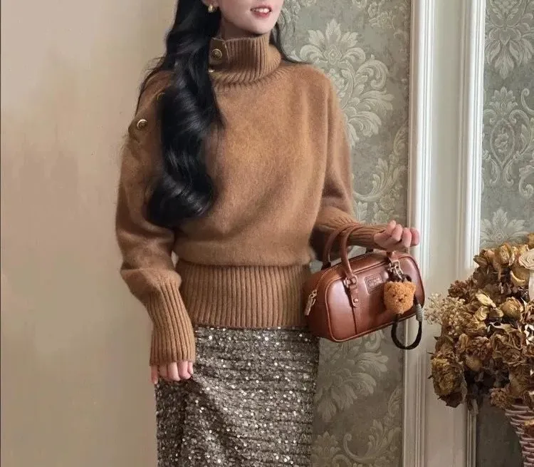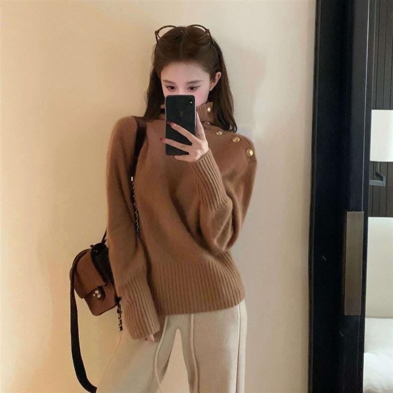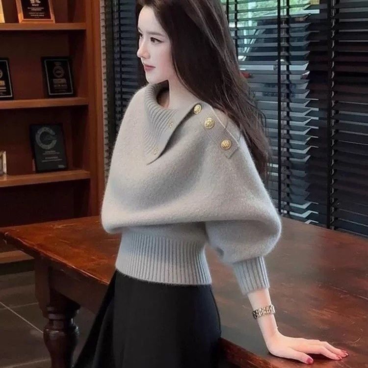 高級感韓系慵懶可外穿不規則翻領針織毛衣-Cicimode